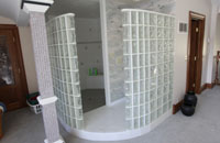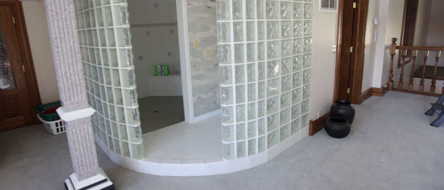 Note the glass block and the 4" stepdown in the shower area.